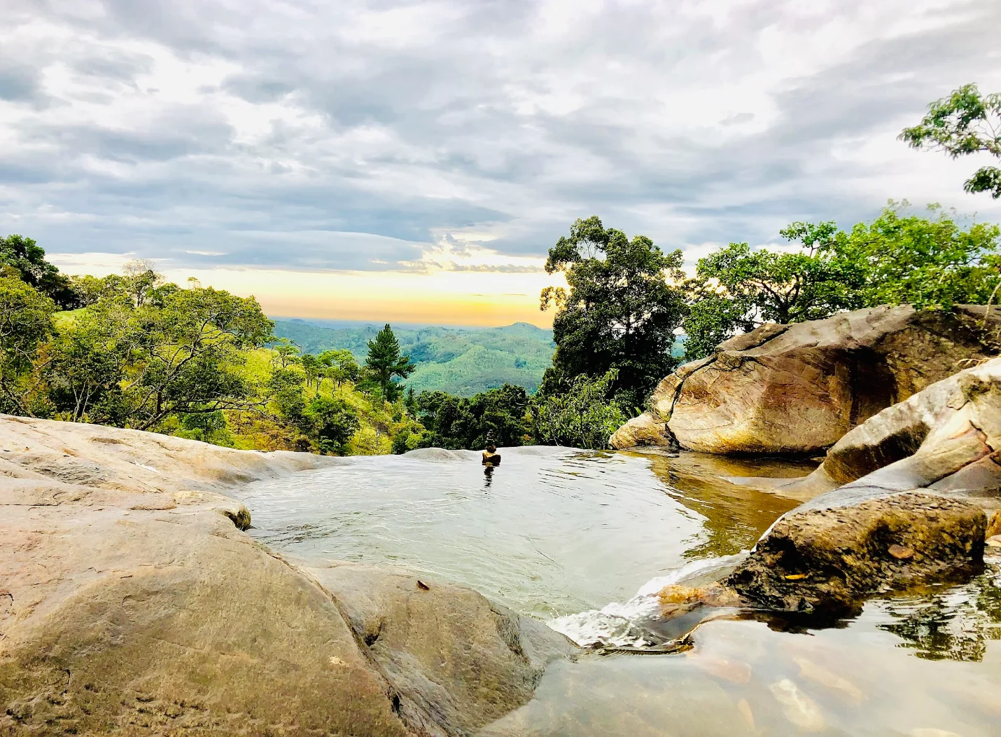 Morning: Today’s adventure begins with a journey to the magnificent Diyaluma Falls, the second-highest waterfall in Sri Lanka. Unlike many falls viewed only from a distance, a trek to the upper falls allows you to stand at the very brink of the cascade. Here, you can take a refreshing dip in a series of natural rock pools that act as “infinity pools” at the edge of the cliff, offering spectacular views of the plains stretching out below.